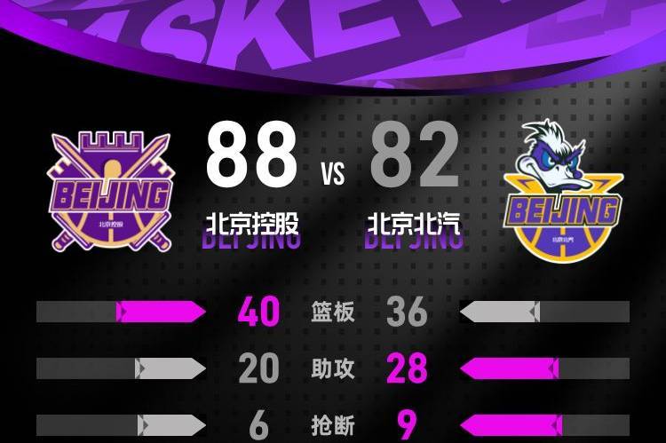 第四节,北京北汽先声夺人,开局打出一波攻势,将比分反超至67-64。不过,北京控股并未就此放弃,迅速找回状态,不仅抹平了分差,还在小节中段时将领先优势扩大到10分。尽管北京北汽奋起直追,努力缩小分差,但最终未能改写结果。比赛结束,北京控股以88-82赢得胜利。